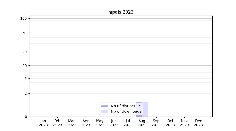 Number of downloads for experiment package nipals, year by year, from 2025 back to 2014 (years with no downloads are omitted):