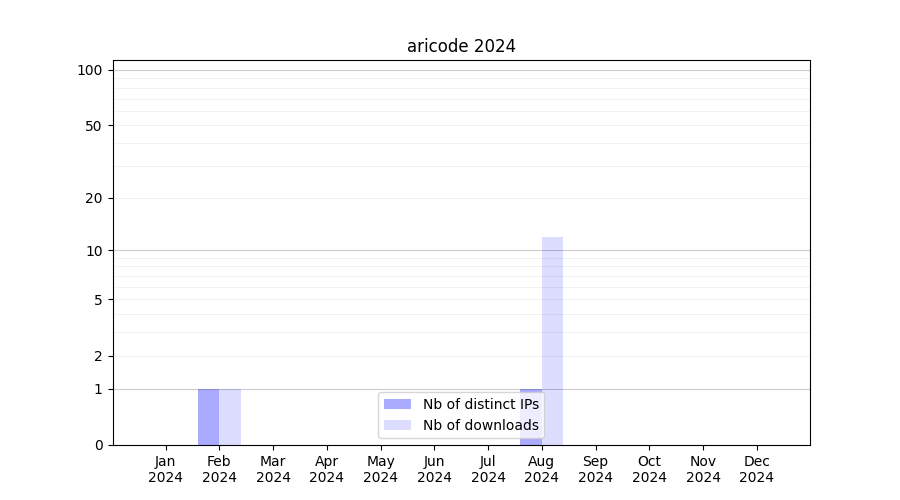 Number of downloads for workflow package aricode, year by year, from 2025 back to 2015 (years with no downloads are omitted):