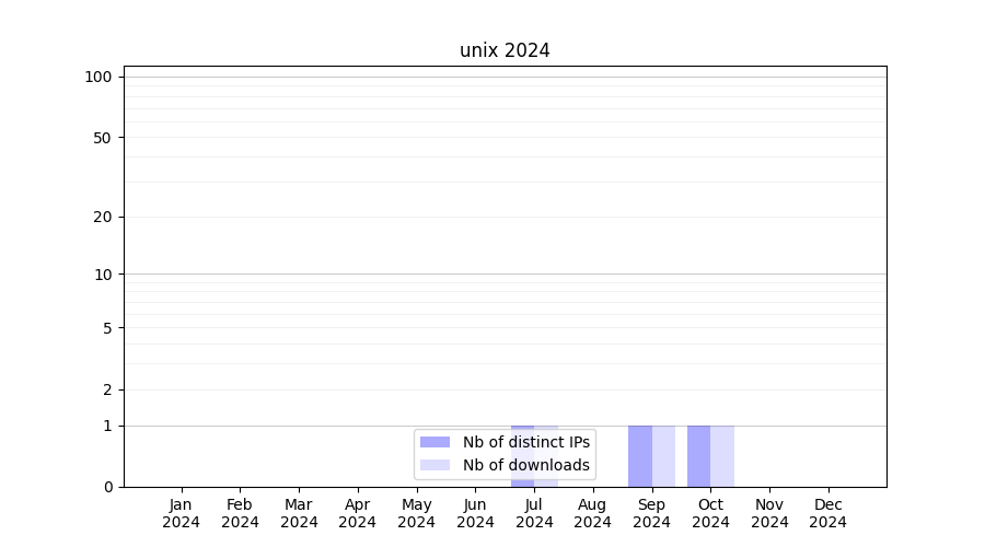Number of downloads for annotation package unix, year by year, from 2025 back to 2014 (years with no downloads are omitted):