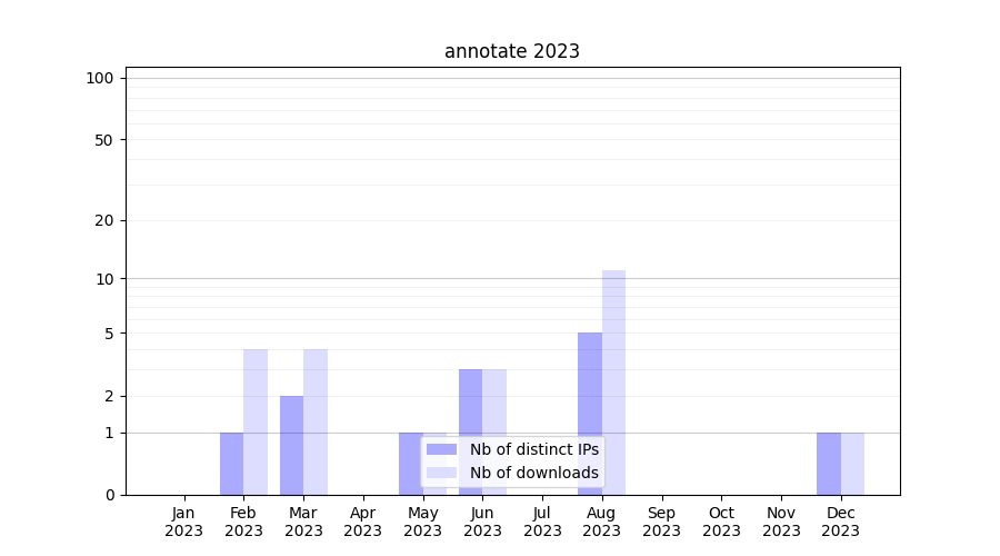 Number of downloads for workflow package annotate, year by year, from 2025 back to 2015 (years with no downloads are omitted):