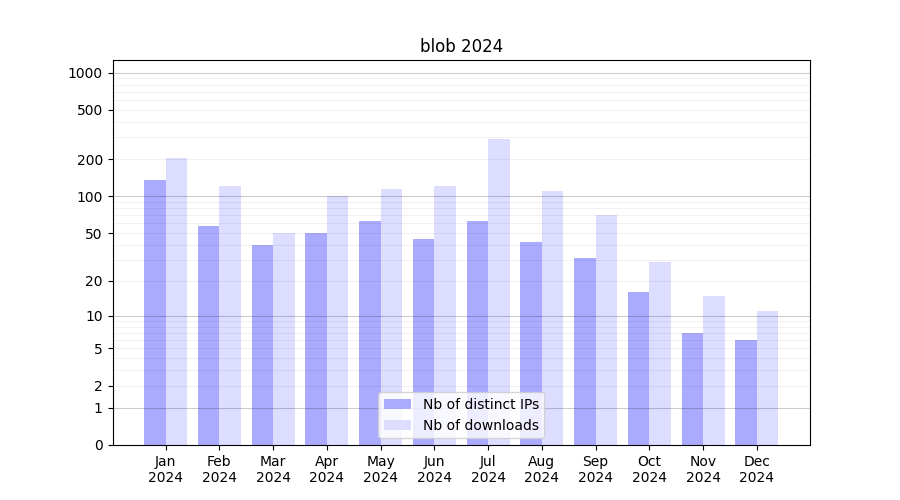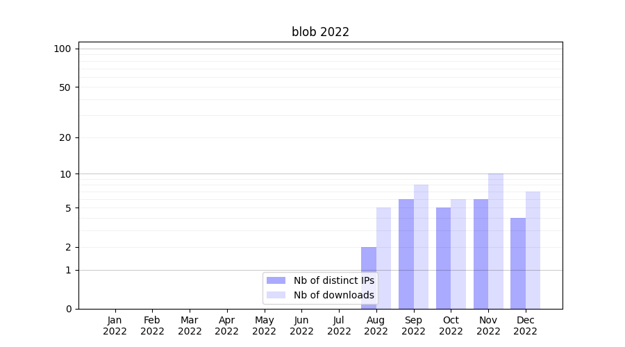 Number of downloads for workflow package blob, year by year, from 2025 back to 2015 (years with no downloads are omitted):