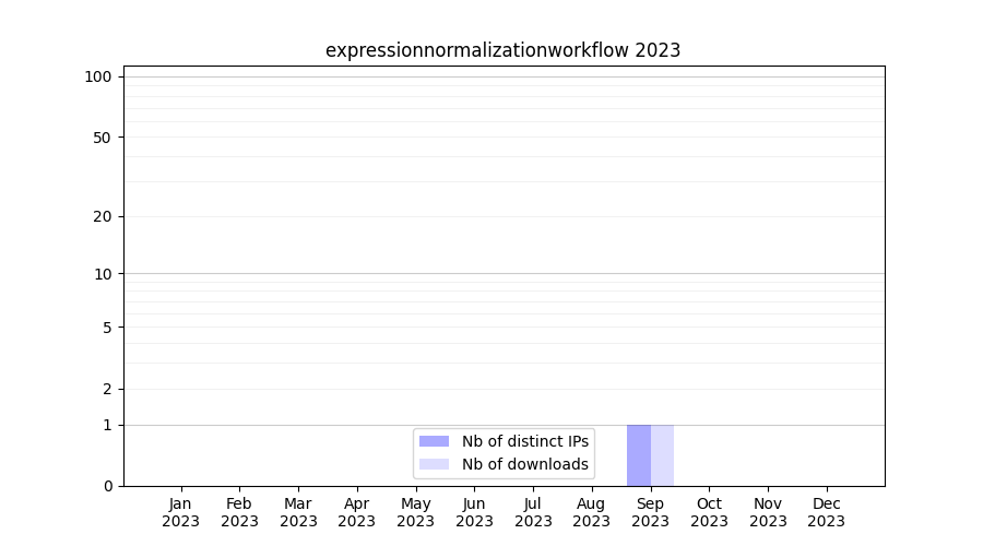 Number of downloads for workflow package expressionnormalizationworkflow, year by year, from 2025 back to 2015 (years with no downloads are omitted):