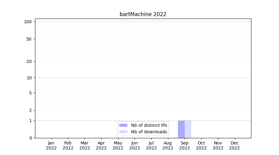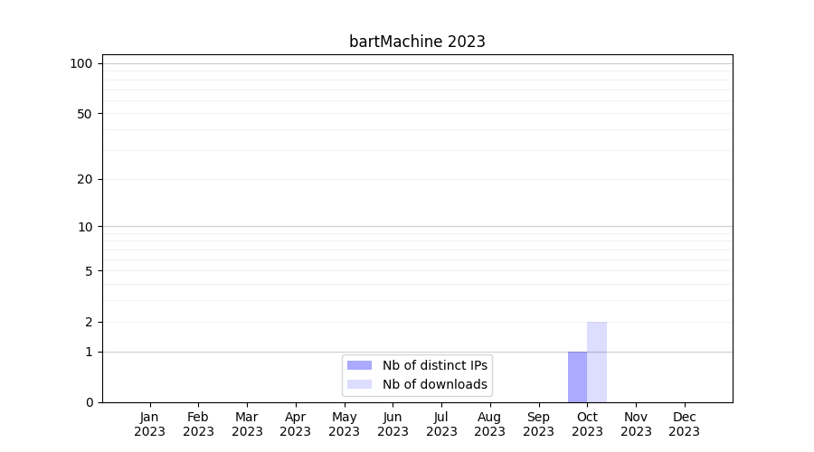 Number of downloads for software package bartMachine, year by year, from 2025 back to 2014 (years with no downloads are omitted):
