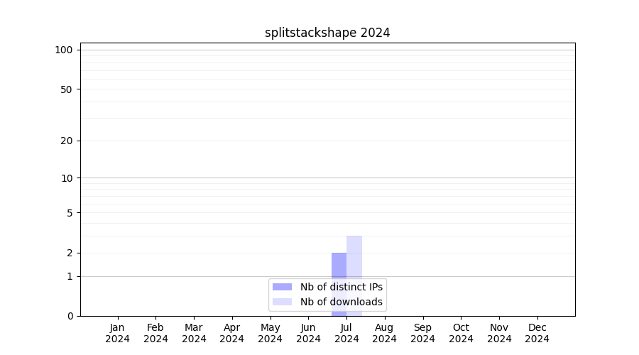Number of downloads for software package splitstackshape, year by year, from 2025 back to 2014 (years with no downloads are omitted):