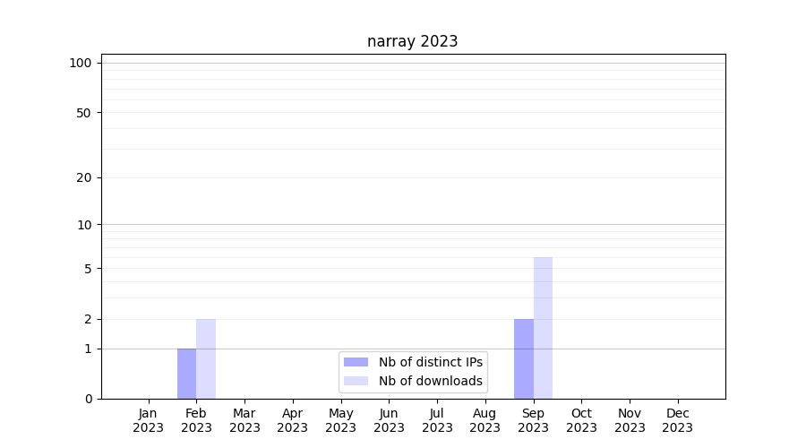 Number of downloads for annotation package narray, year by year, from 2025 back to 2014 (years with no downloads are omitted):