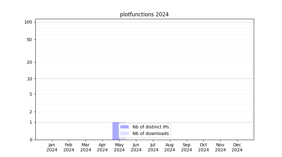 Number of downloads for annotation package plotfunctions, year by year, from 2025 back to 2014 (years with no downloads are omitted):