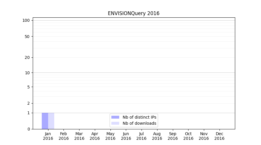Number of downloads for experiment package ENVISIONQuery, year by year, from 2025 back to 2014 (years with no downloads are omitted):