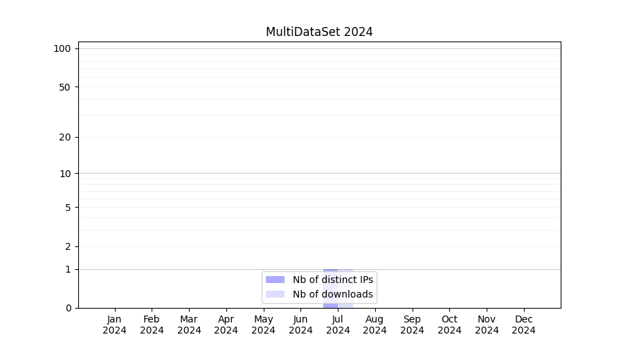 Number of downloads for experiment package MultiDataSet, year by year, from 2025 back to 2014 (years with no downloads are omitted):