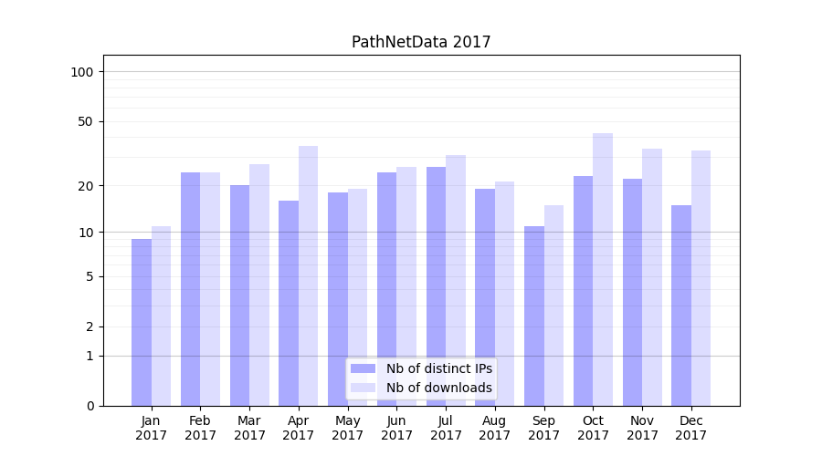| Month | Nb of distinct IPs | Nb of downloads |