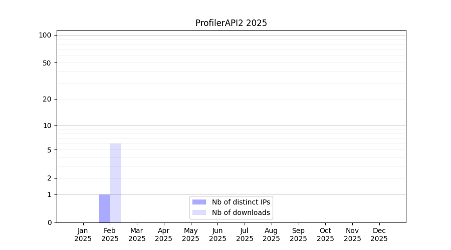 Number of downloads for experiment package ProfilerAPI2, year by year, from 2025 back to 2014 (years with no downloads are omitted):
