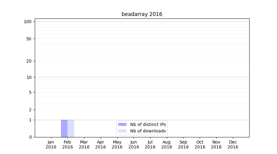 Number of downloads for experiment package beadarray, year by year, from 2025 back to 2014 (years with no downloads are omitted):