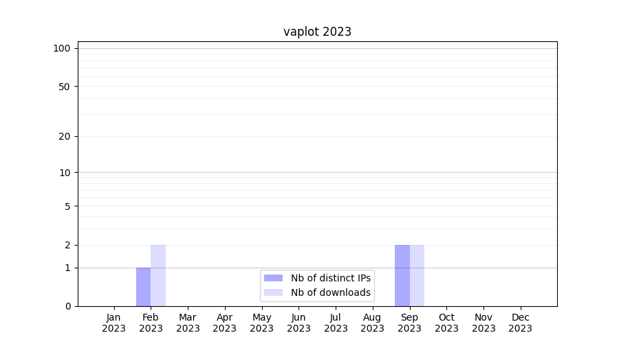 Number of downloads for experiment package vaplot, year by year, from 2025 back to 2014 (years with no downloads are omitted):