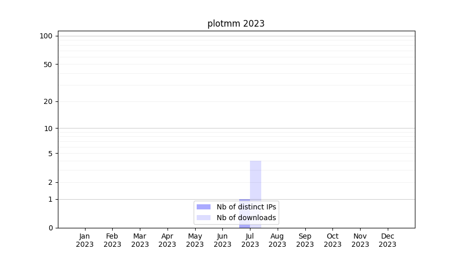 Number of downloads for workflow package plotmm, year by year, from 2025 back to 2015 (years with no downloads are omitted):