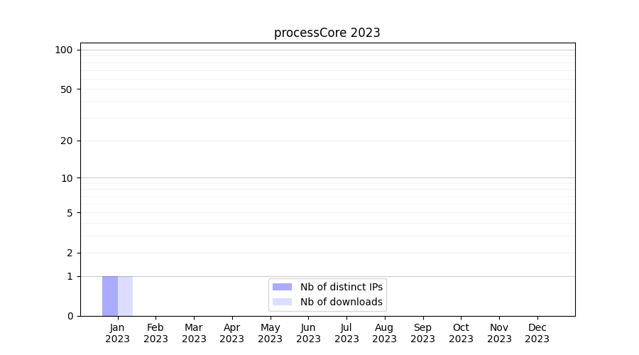 Number of downloads for workflow package processCore, year by year, from 2025 back to 2015 (years with no downloads are omitted):